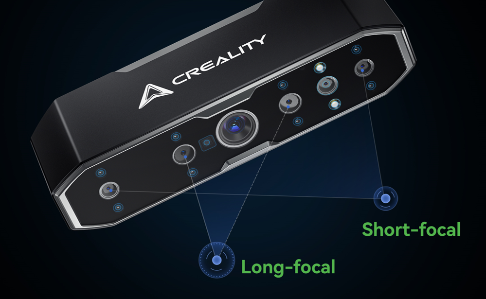 CR-Scan Otter采用奧比中光創(chuàng)新四目視覺設(shè)計,長焦雙目用于掃描中小型物體,短焦雙目用于掃描大物體