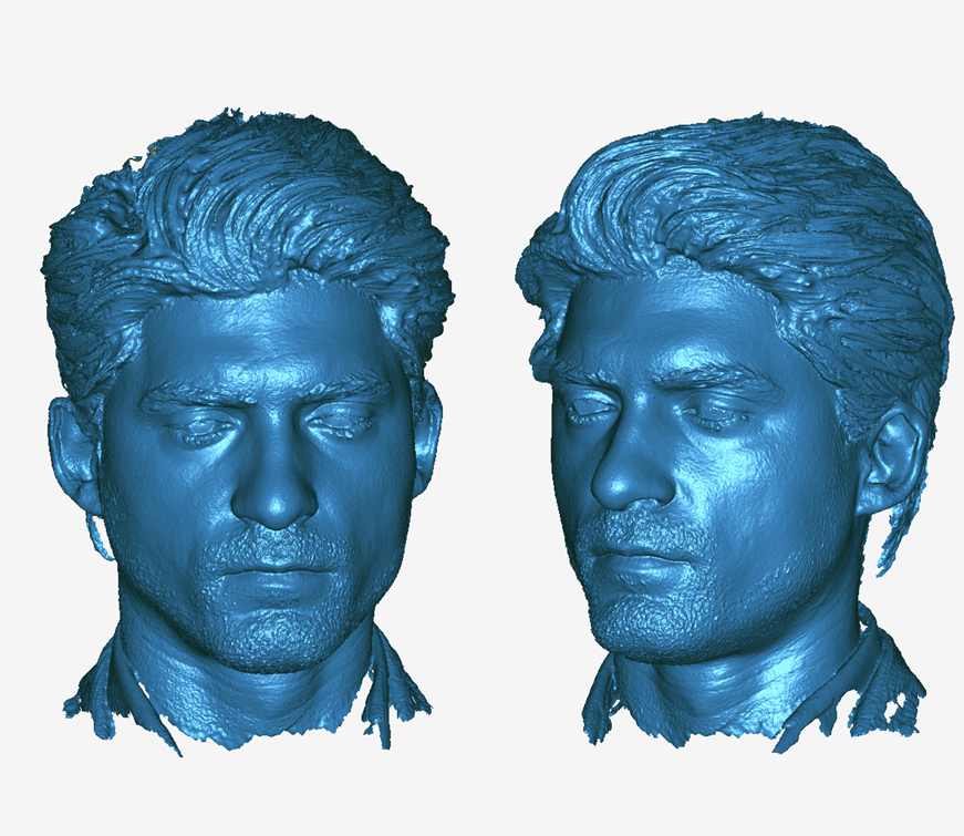CR-Scan Raptor融合藍(lán)色線激光和近紅外光兩套光源,7條藍(lán)色激光線均勻分布,單線細(xì)至0.1mm;采用230萬像素高分辨率3D成像相機(jī),細(xì)節(jié)豐富,邊緣銳利;在紅外結(jié)構(gòu)光掃描模式下,可實(shí)現(xiàn)無標(biāo)記點(diǎn)掃描,適合人臉、人體以及大型物體的掃描。
