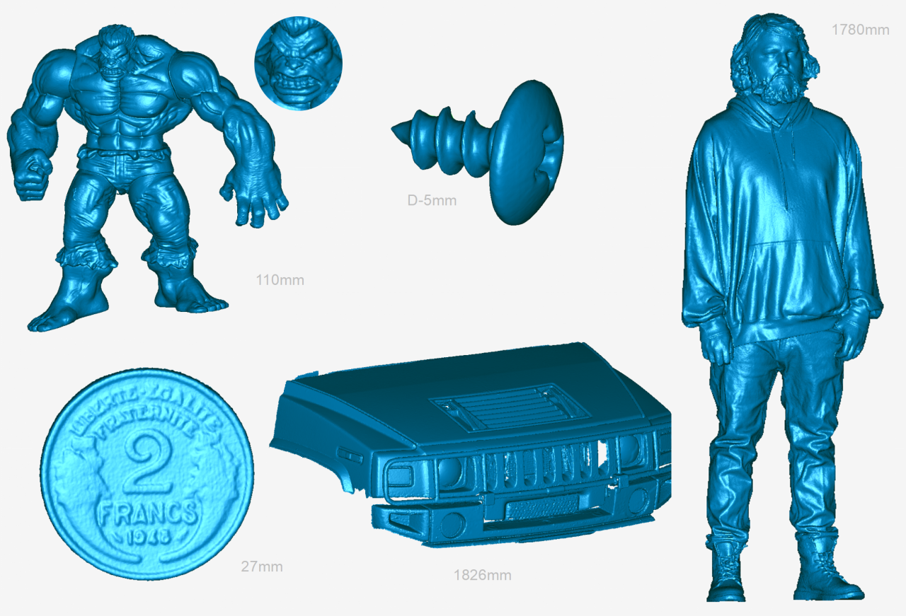 CR-Scan Raptor可以掃描各種尺寸的物體,小到螺釘、硬幣,大到發(fā)動機(jī)、汽車、人體,都能輕松掃描