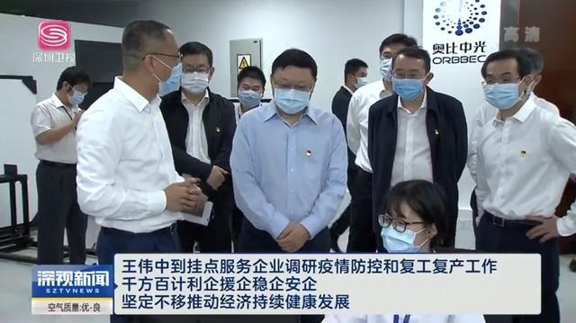 3月26號,深圳市委書記、市新冠肺炎防控領(lǐng)導(dǎo)小組(指揮部)組長(總指揮)王偉中到掛點(diǎn)服務(wù)的深圳奧比中光科技有限公司調(diào)研疫情防控和復(fù)工復(fù)產(chǎn)工作。奧比中光創(chuàng)始人、CEO黃源浩陪同調(diào)研并講解。王偉中書記強(qiáng)調(diào),要積極有序推動企業(yè)復(fù)工復(fù)產(chǎn)、達(dá)產(chǎn)增產(chǎn),千方百計(jì)利企援企穩(wěn)企安企,更精準(zhǔn)及時(shí)有力幫助企業(yè)紓困解難,堅(jiān)定不移推動經(jīng)濟(jì)持續(xù)健康發(fā)展。